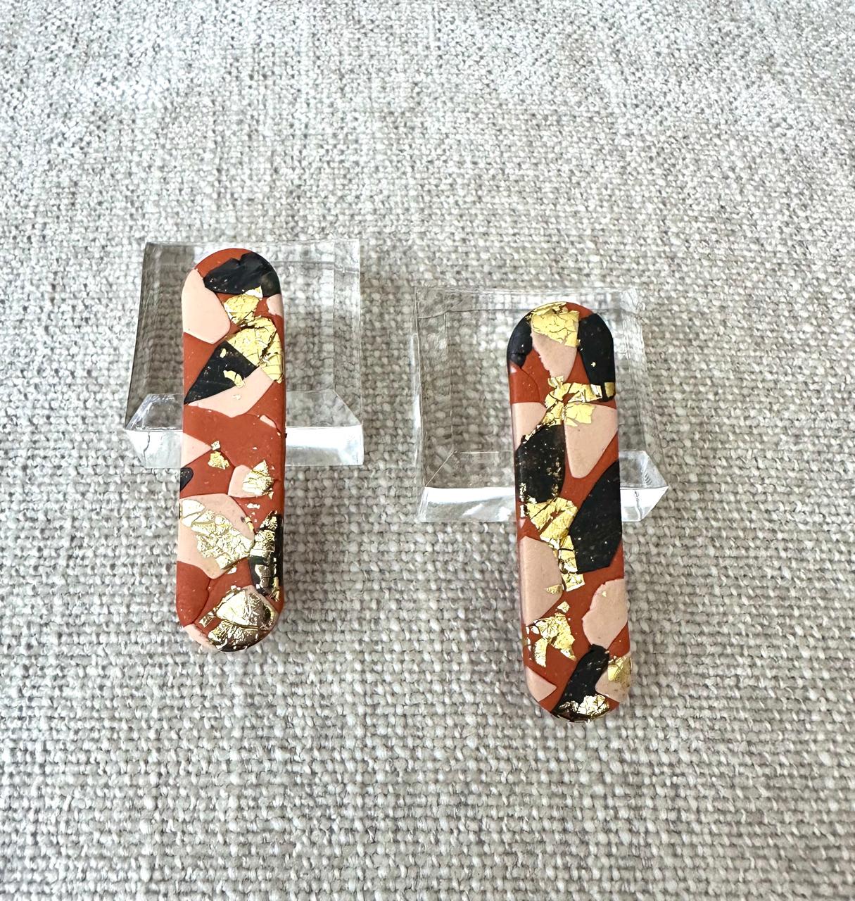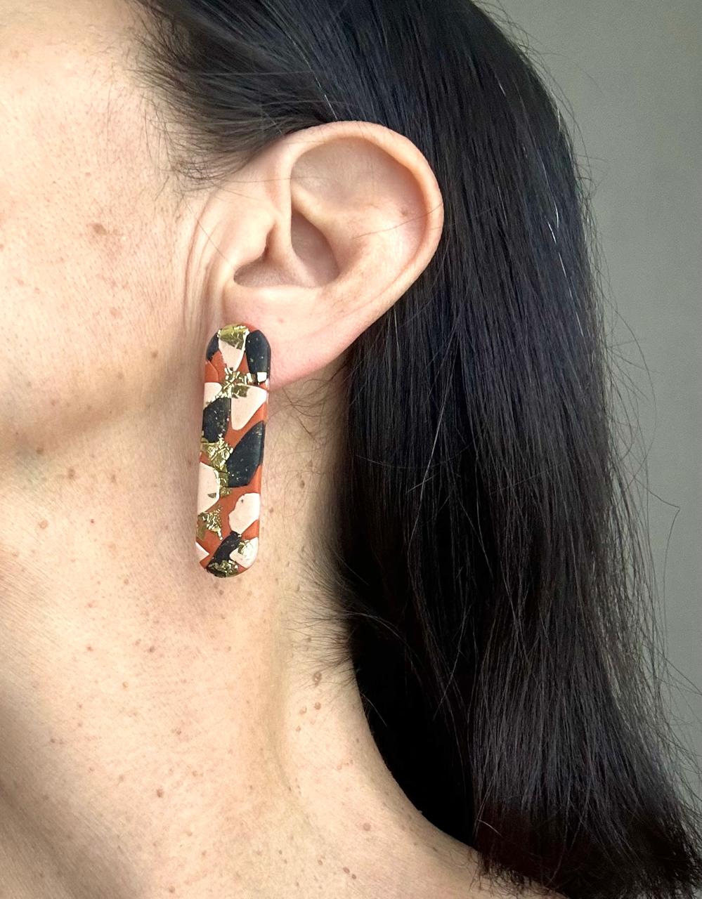 Aros  hechos a mano, combinando colores tierra, con toques de dorado.