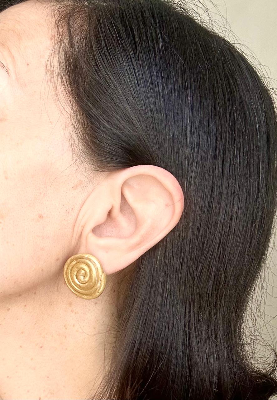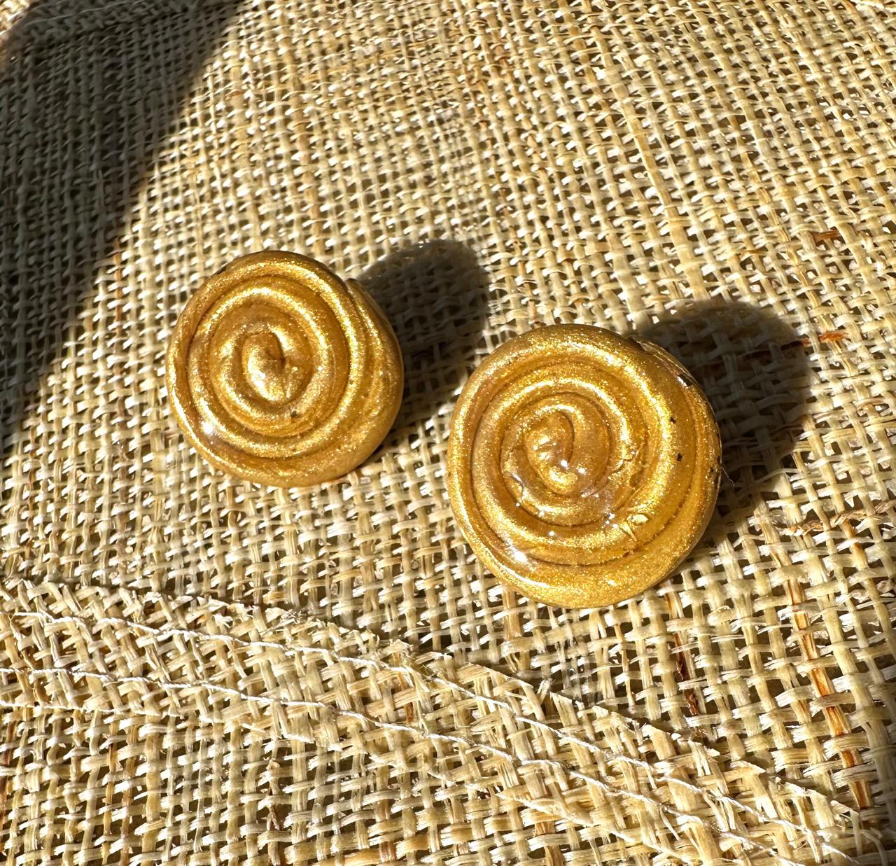 Aros hechos a mano en tono dorado suave con toque muy mínimo de brillo dorado.