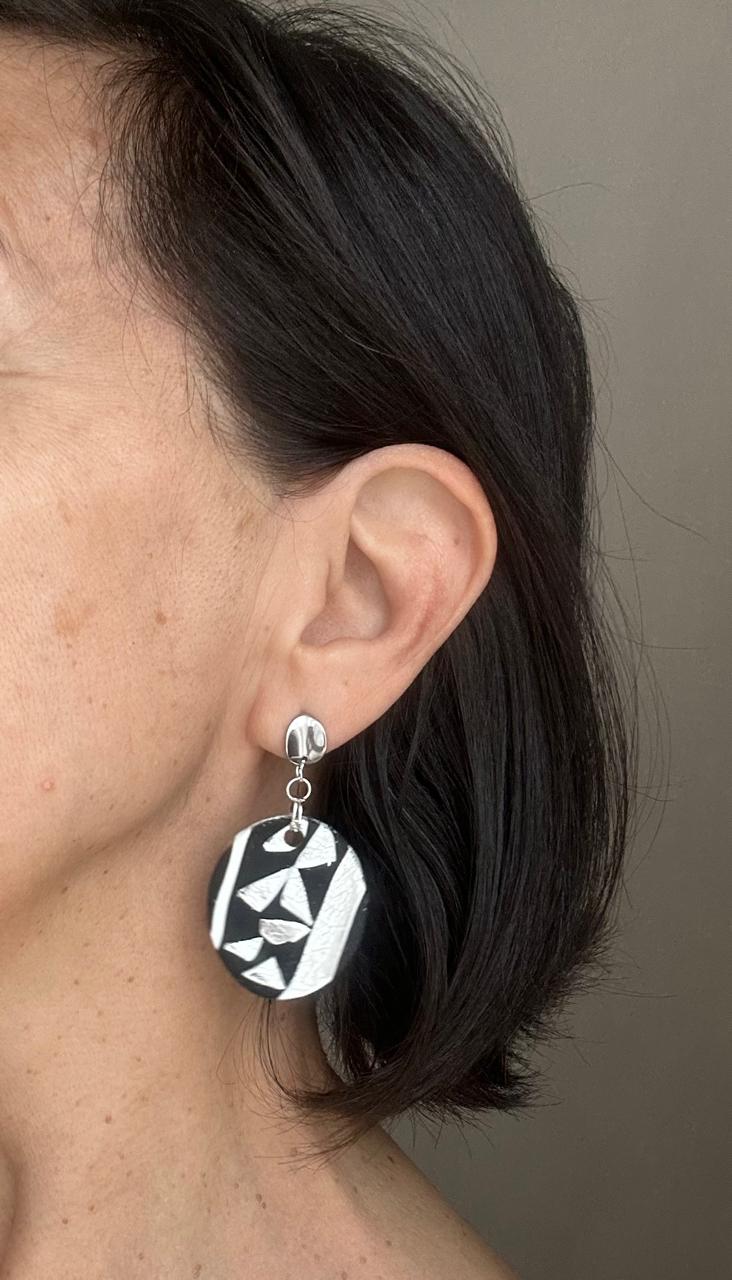 Aros hechos a mano en tono negro, blanco y plateado, dándoles un efecto ¨agrietado¨.